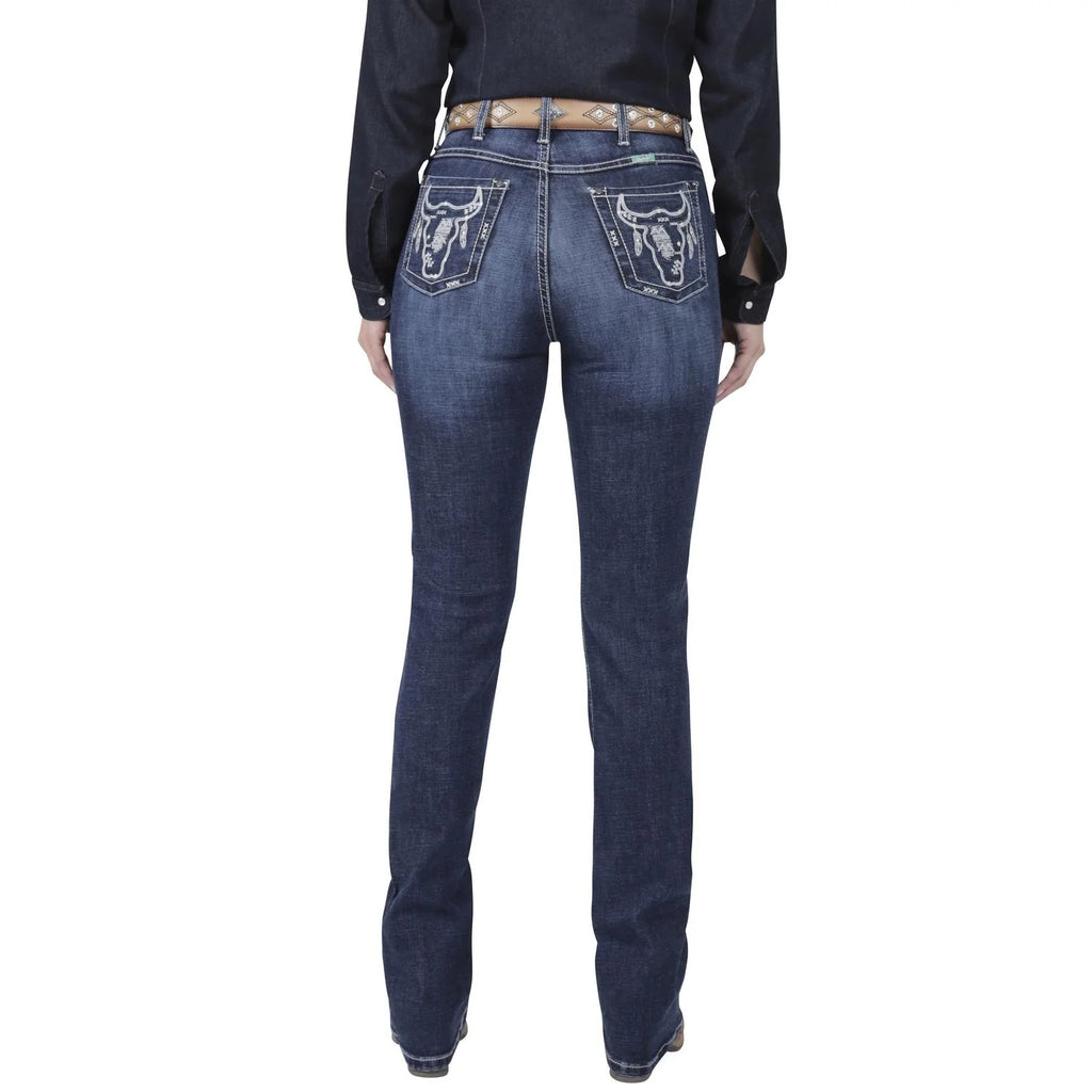 PANTALON WRANGLER 112373927 JEANS HIGH RISE CORTE BOTA BORDADO DAMA